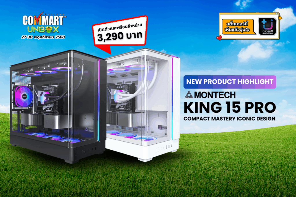 Ascenti พร้อมลุยงาน COMMART UNBOX ส่งท้ายปี 2568 ขนทัพคอมเซ็ตสุดแรง สินค้าไอทีพร้อมโปรโมชั่นสุดคุ้มค่า วันที่ 27-30 พฤศจิกายน 2568 ณ ไบเทค บางนา ในครั้งนี้ Ascenti Comset จัดเตรียมสเปคความแรง มาให้เลือกสรรทุกช่วงราคา พร้อมโปรโมชั่นผ่อนรวมกับบัตรเครดิต 0% สูงสุดถึง 48 เดือน นอกจากนี้ยังไฮไลท์สินค้าใหม่ นำมาเปิดตัวและพร้อมจำหน่ายในงานก่อนใคร และสานต่อความสำเร็จแคมเปญพิเศษเฉพาะลูกค้าที่ซื้อการ์ดจอแยกของประกัน Ascenti เฉพาะในงานนี้เท่านั้น!