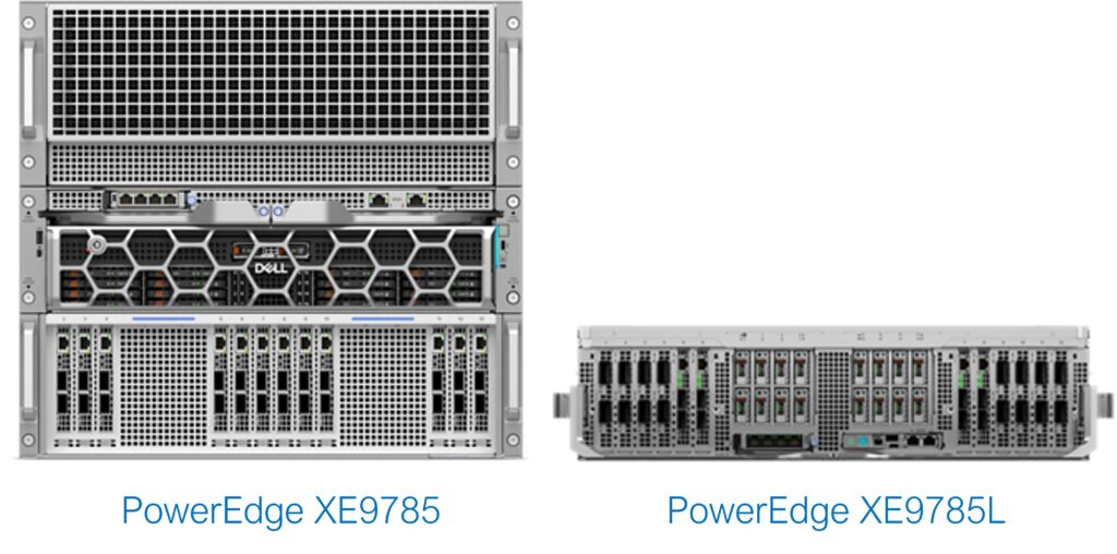 - Dell PowerEdge XE9785 และ XE9785L ออกแบบมาเพื่อรองรับเวิร์กโหลด AI และ HPC รุ่นถัดไปโดยเฉพาะ โดยรุ่น XE9785 (10U) เป็นระบบระบายความร้อนด้วยอากาศ และรุ่น XE9785L (30U) เป็นระบบระบายความร้อนด้วยของเหลว มาพร้อมโปรเซสเซอร์ AMD EPYC™ แบบซ็อกเก็ตคู่ และ GPU AMD Instinct™ MI355X จำนวน 8 ตัวต่อโหนด ผสานกับ AMD Pensando™ Pollara 400 AI NICs และ Dell PowerSwitch AI fabric ซึ่งแพลตฟอร์มเหล่านี้สามารถปรับขยายการประมวลผล เพิ่มความคุ้มค่าในการลงทุน (Total Cost of Ownership หรือ TCO) และช่วยลดต้นทุนการดำเนินงานได้อย่างมีประสิทธิภาพ