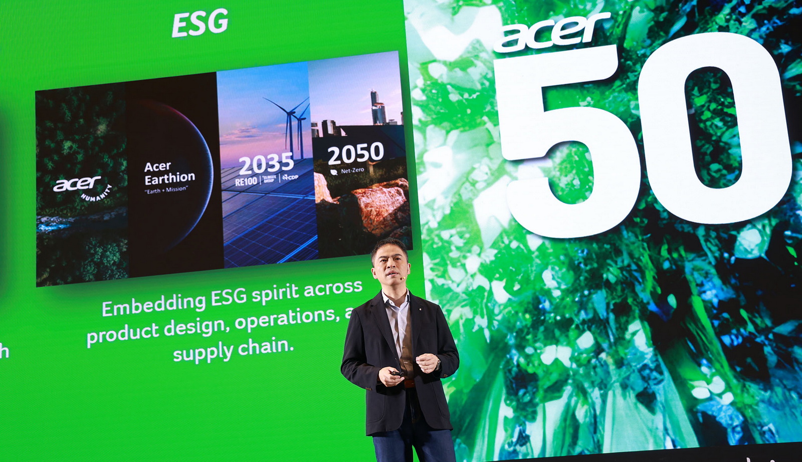อีกด้านหนึ่ง เอเซอร์ยังดำเนินธุรกิจภายใต้แนวคิด ESG (Environmental, Social and Governance) โดยผสานหลักความยั่งยืนเข้ากับทุกกระบวนการสำคัญ ตั้งแต่การออกแบบผลิตภัณฑ์ การดำเนินงาน ไปจนถึงการบริหารจัดการซัพพลายเชน พร้อมเดินหน้าพัฒนาผลิตภัณฑ์ที่ใช้วัสดุหมุนเวียน เพื่อให้การเติบโตของเทคโนโลยีดำเนินควบคู่ไปกับความรับผิดชอบต่อสังคมและสิ่งแวดล้อม