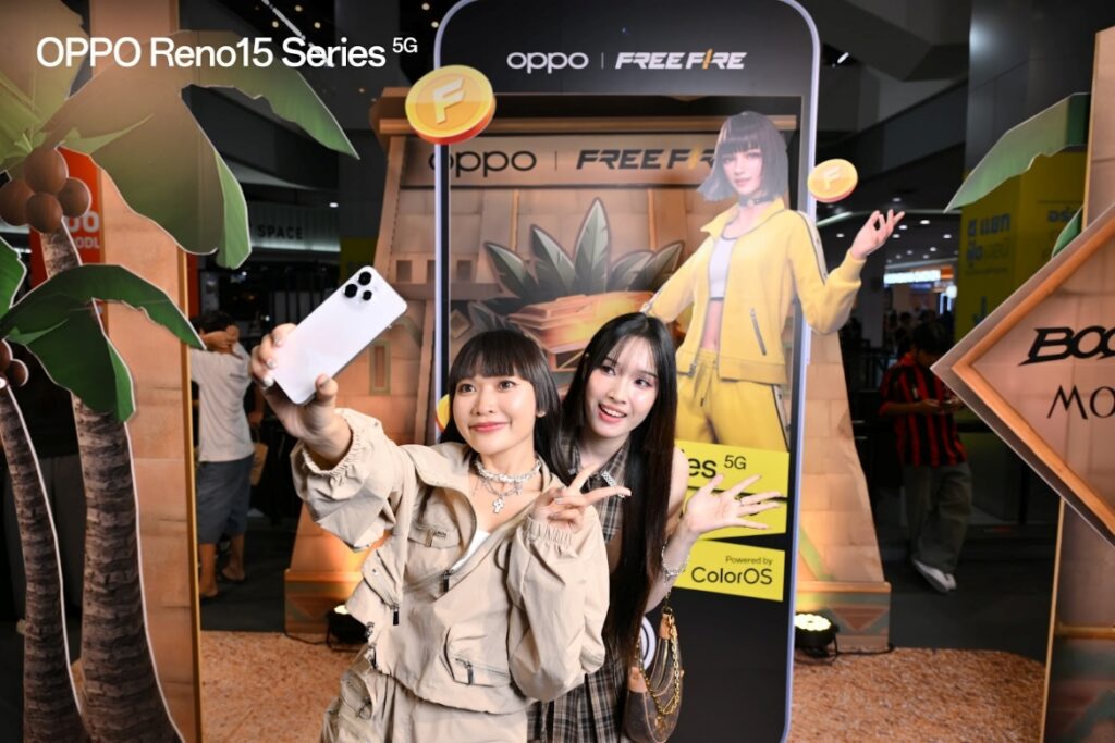 บรรยากาศภายในงานนี้เต็มไปด้วยความคึกคัก ผู้เข้าร่วมกิจกรรมได้ร่วมออกล่าขุมทรัพย์ตามภารกิจต่าง ๆ ภายในบูท เพื่อลุ้นรับไอเทมสุดพิเศษจาก OPPO และ Free Fire นอกจากนี้ ยังมีกิจกรรมที่น่าสนใจจาก OPPO อีกมากมาย โดยเฉพาะกิจกรรมเปิดให้ทดลองประสิทธิภาพเล่นเกมบนสมาร์ตโฟน OPPO Reno15 Series 5G รวมถึงกิจกรรมถ่ายรูปเช็คอินกับฉากเท่ ๆ แชร์อวดเพื่อนลงโซเชียล และกิจกรรม Lucky Draw ลุ้นรับสมาร์ตโฟน OPPO Reno15 Series 5G