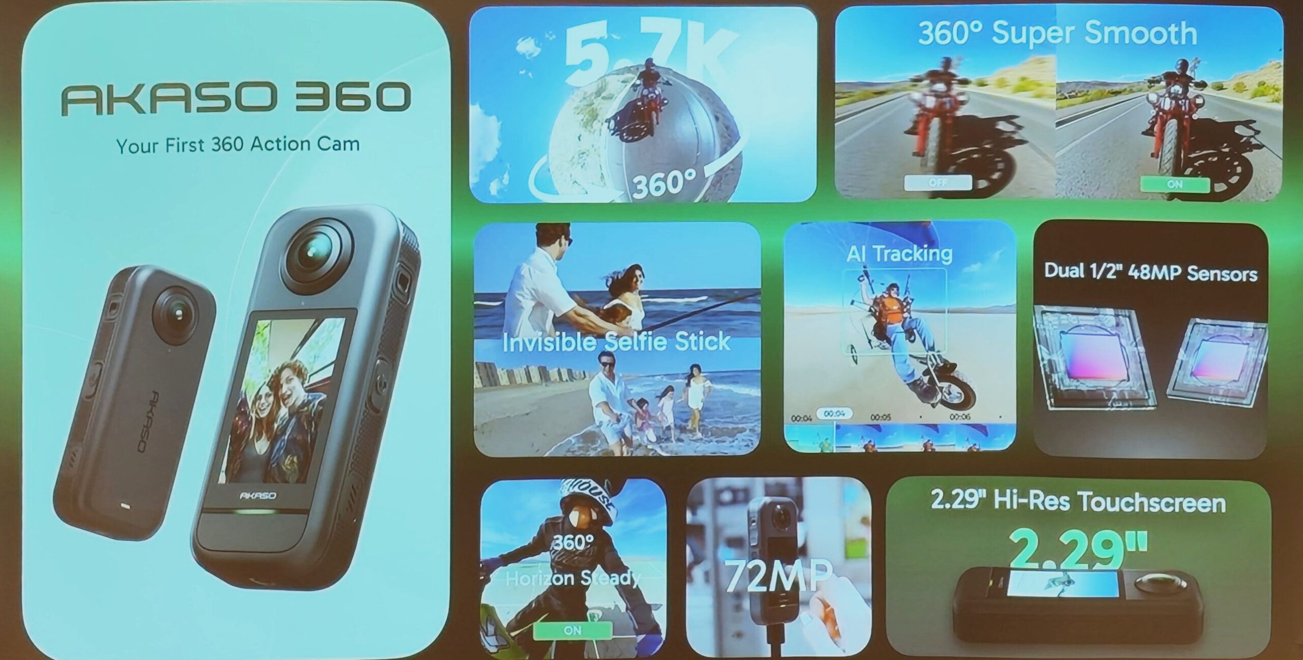 AKASO 360 Action Camera ที่สามารถถ่ายทั้งภาพนิ่งและวิดีโอได้แบบ 360° สามารถใช้งานได้ง่าย เก็บรายละเอียดได้ทุกโมเม้นต์เพียงปุ่มเดียว เหมาะสำหรับมือใหม่ที่ต้องการทำคอนเท็นระดับเริ่มต้นกับค่าตัวเบาๆเริ่มต้นเพียง 7,999 บาท AKASO 360 มาพร้อมกับจุดเด่นหลักๆคือ เซนเซอร์ขนาดใหญ่ 1/2″ ทั้งหมดสองตัว รองรับการถ่ายวิดีโอความละเอียดสูงสุด 5.7K 30fps และถ่ายภาพนิ่งความละเอียดสูงถึง 72MP มีระบบติดตาม AI Tracking ช่วยให้การตัดต่อง่ายขึ้น กันสั่นดีมากๆพร้อมกับ Horizon Stabilization ไม่ต้องกลัวภาพเอียงอีกต่อไป ถือใช้งานแบบไหนก็เอาอยู่