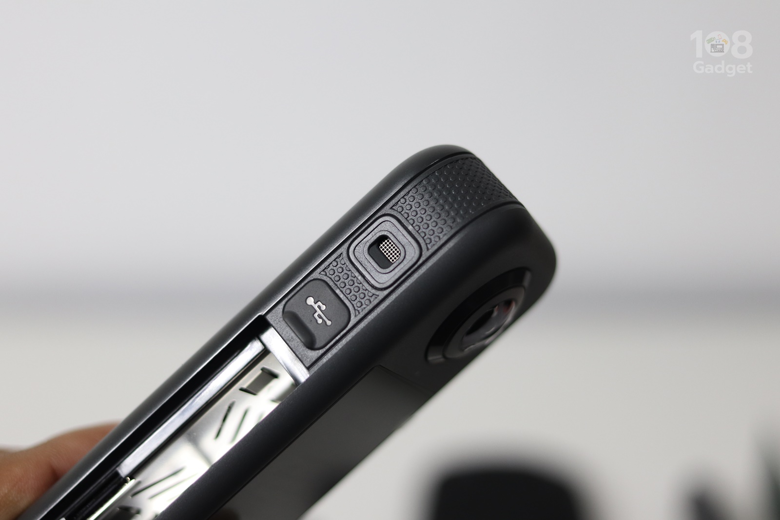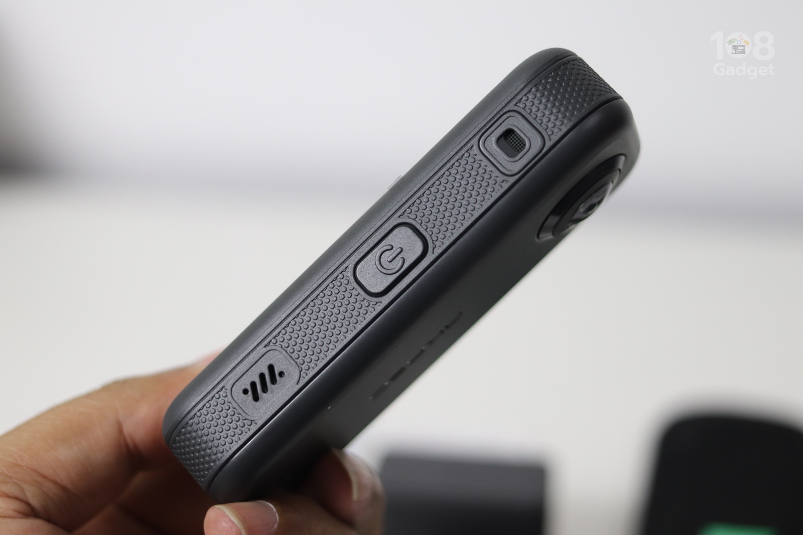 ปุ่ม power อยู่ฝั่งขวา สามารถกดสลับโหมดการถ่ายภาพได้ ไมค์จะมีทั้งสองฝั่งซ้าย-ขวา