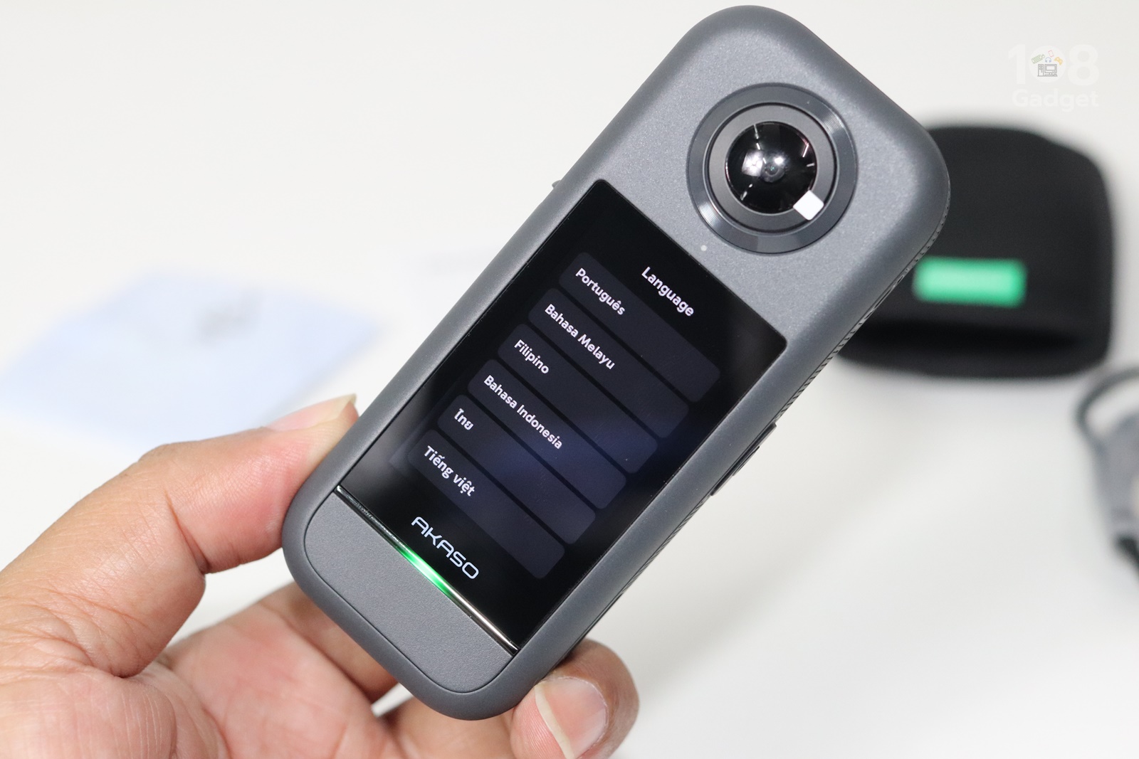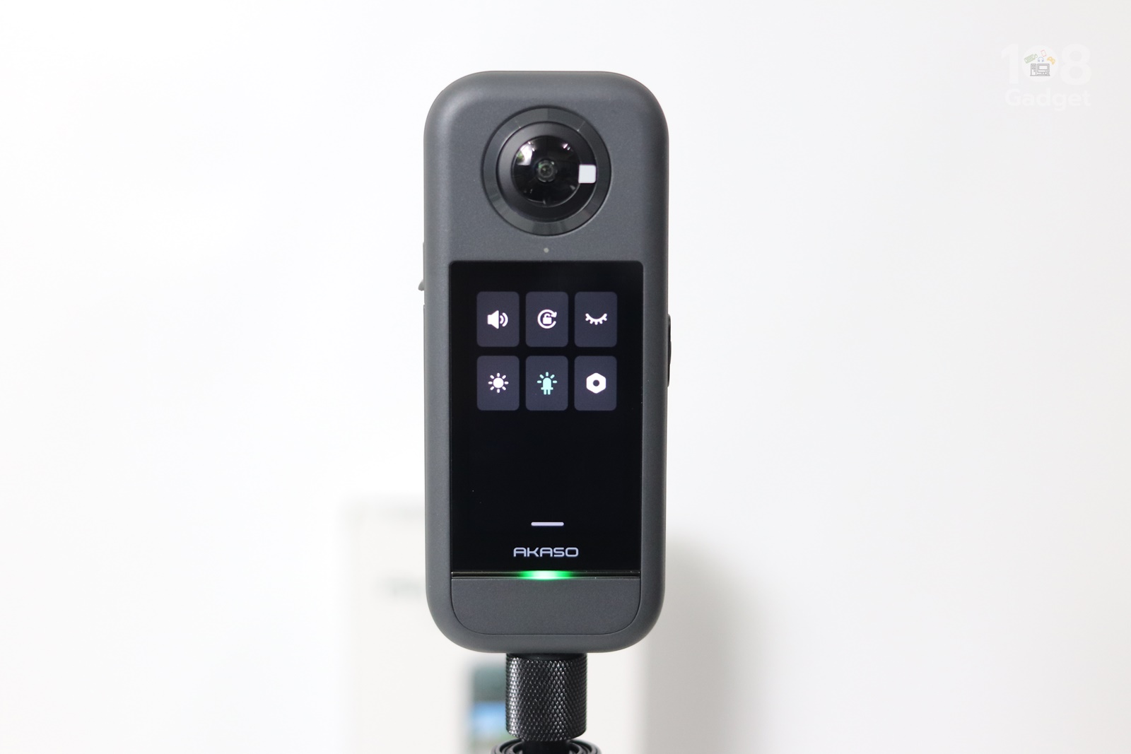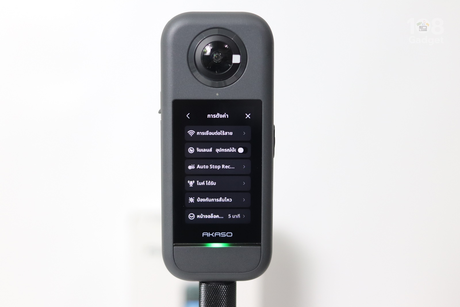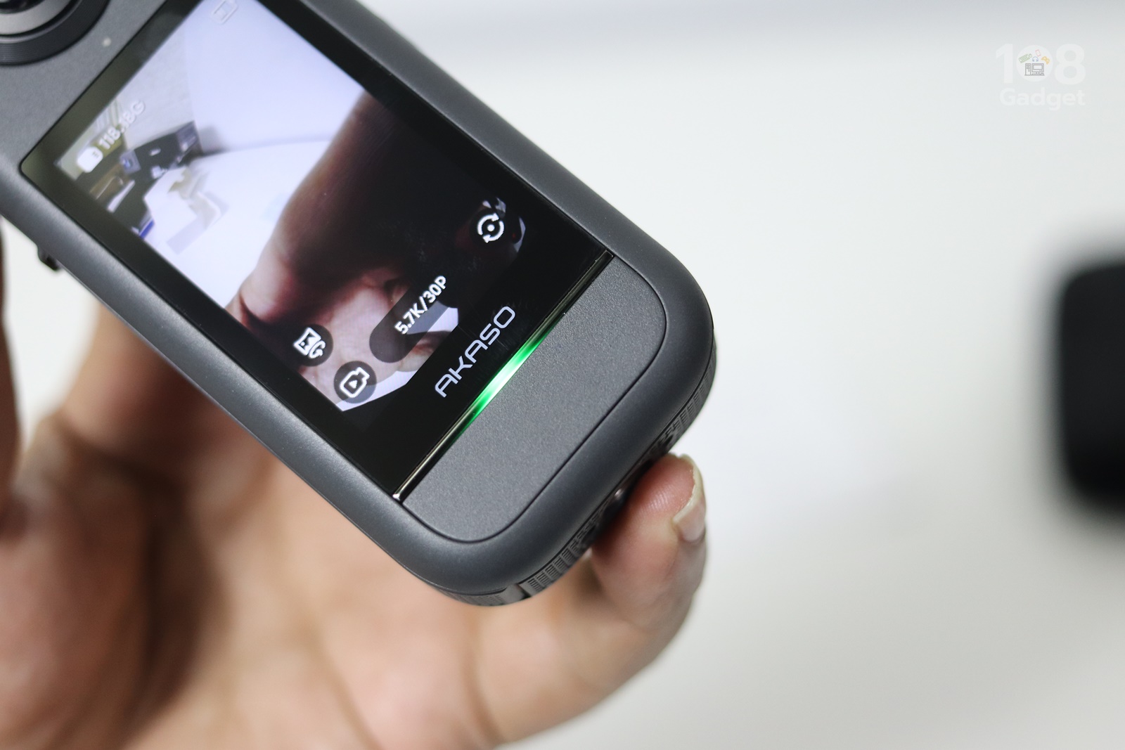 AKASO 360 มีหน้าจอแสดงผลขนาด 2.29 นิ้ว ความละเอียด 480×800 พิกเซล รองรับการทัชสั่งงาน มีไฟแสดงสถานะการทำงานให้ทราบ เราสามารถปิด-เปิดไฟได้นะครับ ด้านหน้ามีปุ่มสั่งงานแบบด่วน เราสามารถเข้าไปตั้งค่าเพิ่มเติมได้นะครับ