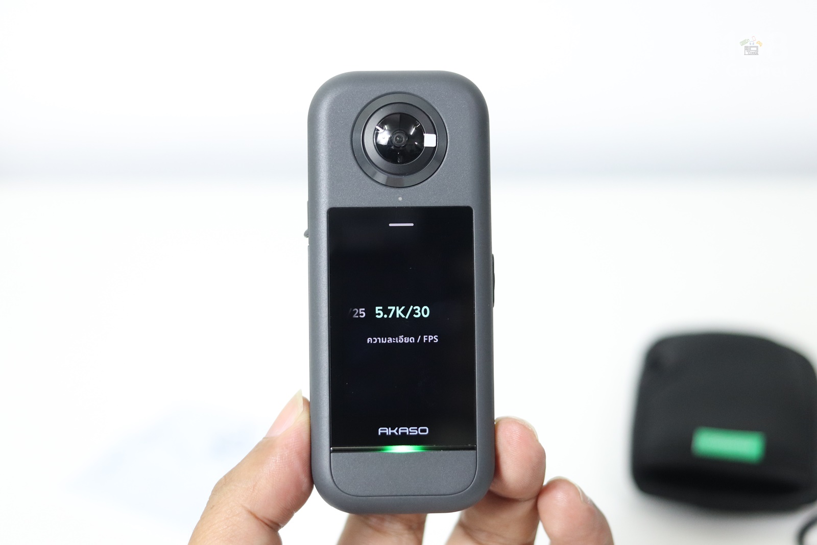 AKASO 360 รองรับการถ่ายวิดีโอได้สูงสุด 5.7K/30fps ในแบบ 360 องศา แต่ถ้าถ่ายแบบเลนส์เดี่ยว ความละเอียดสูงสุด 2.8K/60fps ส่วนภาพนิ่ง ความละเอียดสูงสุด 72MP ในโหมด 360 องศา และ 48MP ในโหมดเลนส์เดี่ยว