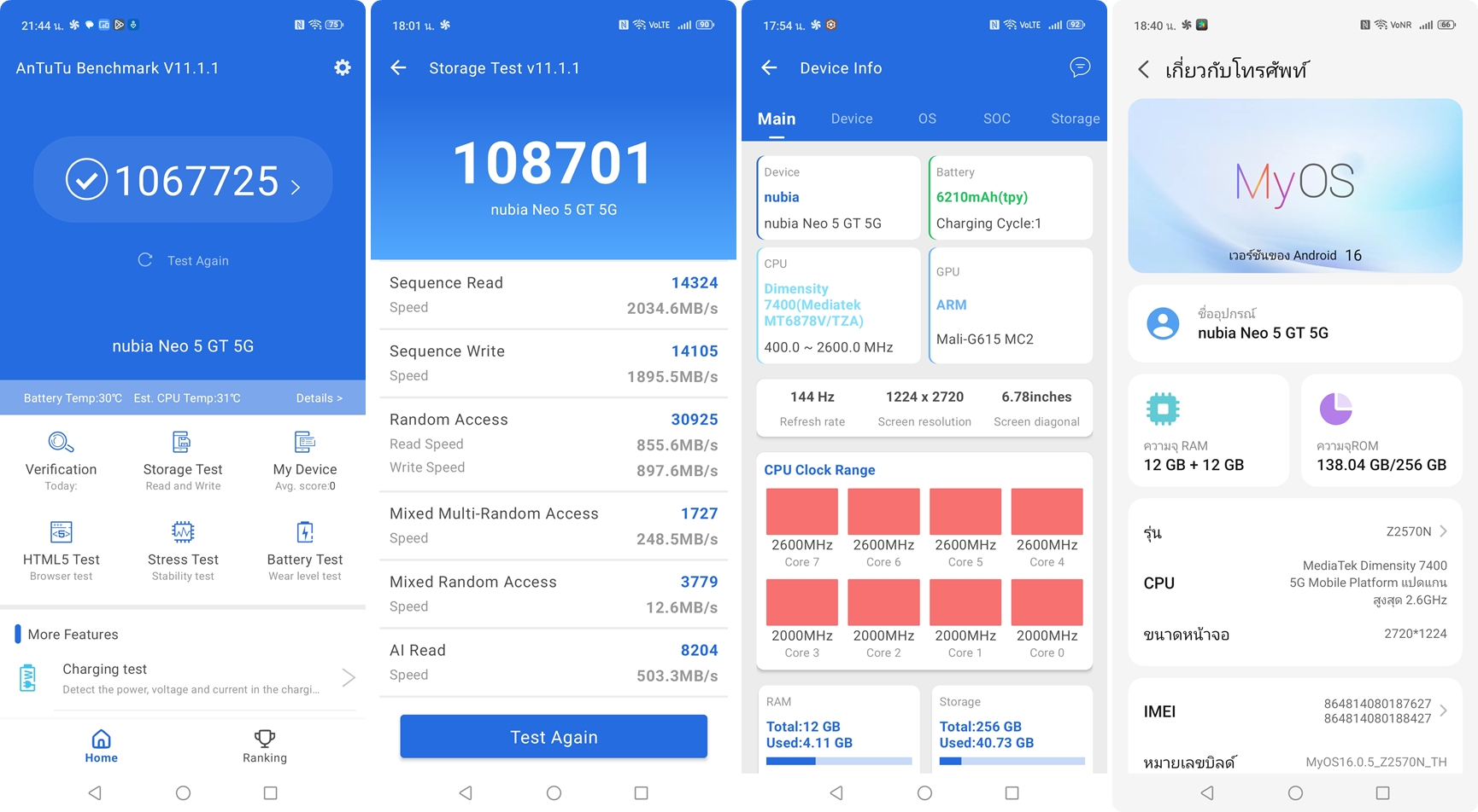 nubia Neo 5 GT เลือกใช้หน่วยประมวลผล CPU MediaTek Dimensity 7400 Octa-core 2.6GHz / GPU Mali-G615 MC2 เป็นชิประดับกลางๆนะครับแต่ให้ประสิทธิภาพดี เล่นเกมได้ไหลลื่นในกลุ่มมือถือระดับกลาง