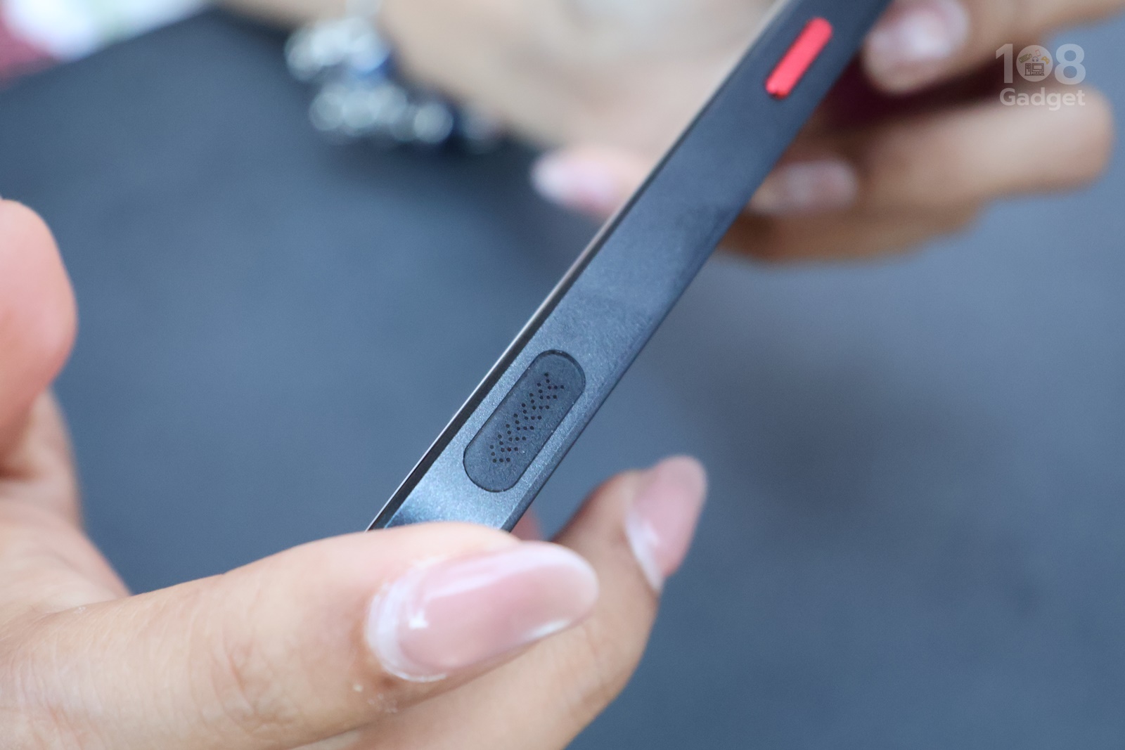 ข้างๆกันจะเป็นช่องลมออก เพื่อระบายความร้อนจากพัดลมด้านในออกมา หนึ่งเดียวที่มี Built-in Active Cooling Fan พัดลมระบายความร้อนในตัว กับสมาร์ตโฟนเล่นเกมระดับเดียวกัน นอกจากติดตั้งพัดลมมาให้แล้วภายในยังมีชุดระบายความร้อนทั้งหมดคือ