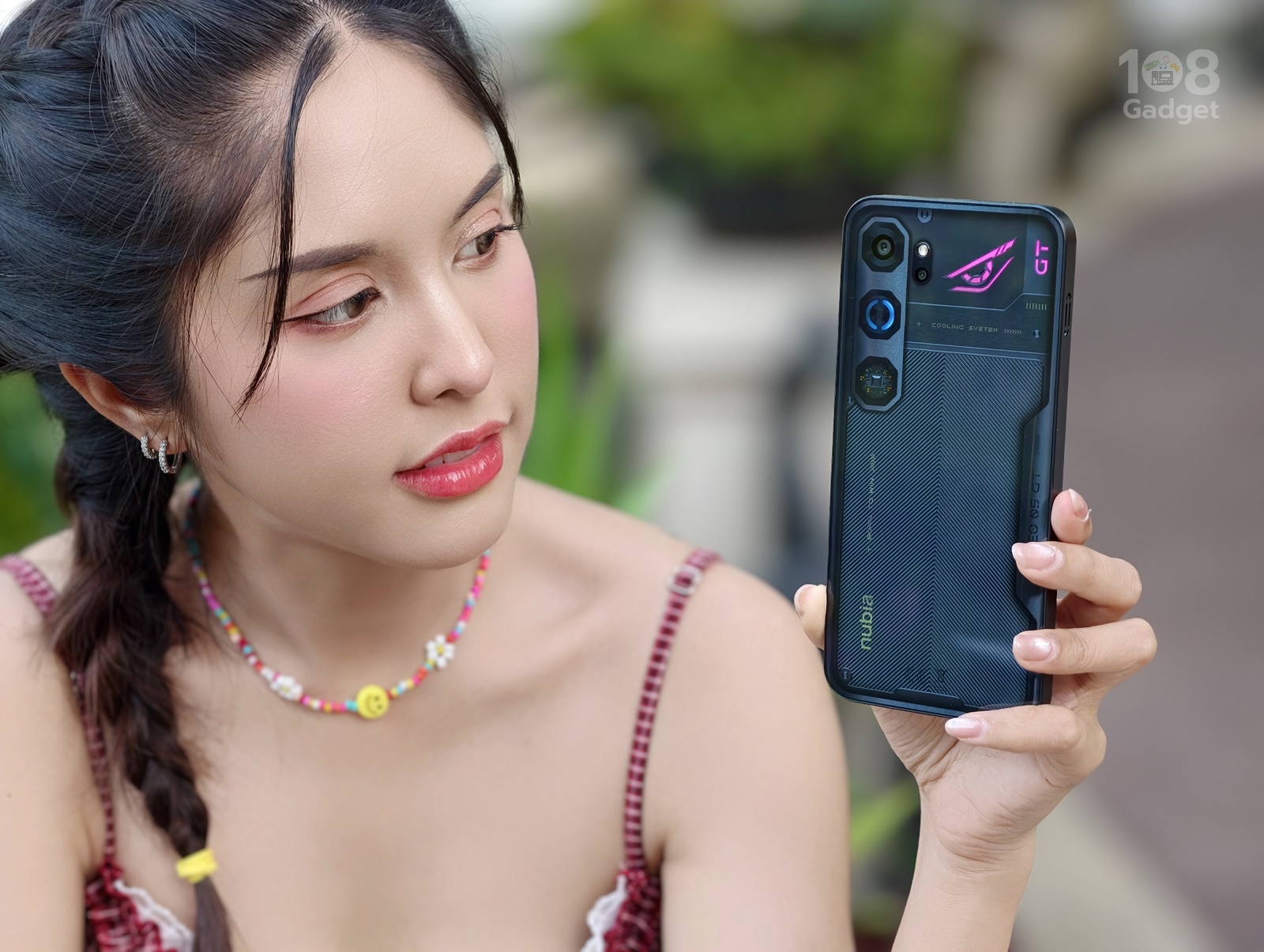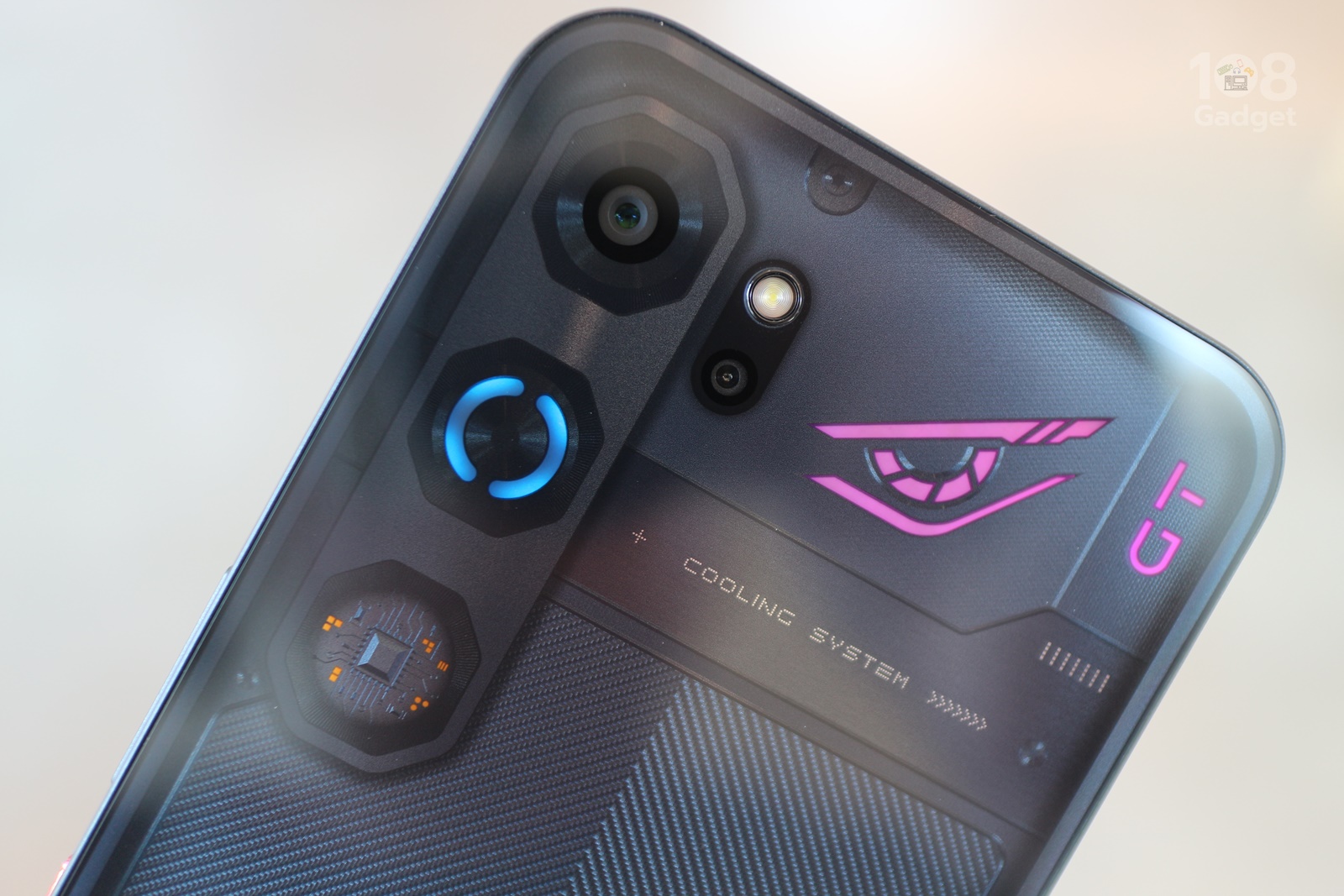 ฝาหลังดีไซน์เรียบแบนไปกับตัวเครื่องแม้แต่เลนส์กล้องก็แบนไปกับตัวเครื่องด้วยครับ เวลาถือเล่นเกมจะได้ถือถนัดมือ ด้านหลังดีไซน์กราฟฟิคสวยงามพร้อมไฟ RGB สามารถปรับรูปแบบการแสดงของแสงได้ รุ่นนี้จะวางจำหน่ายทั้งหมด 3 สี คือ สีดำ Phantom Black, สีเงิน Stellar Silver, สีทอง Electro Gold