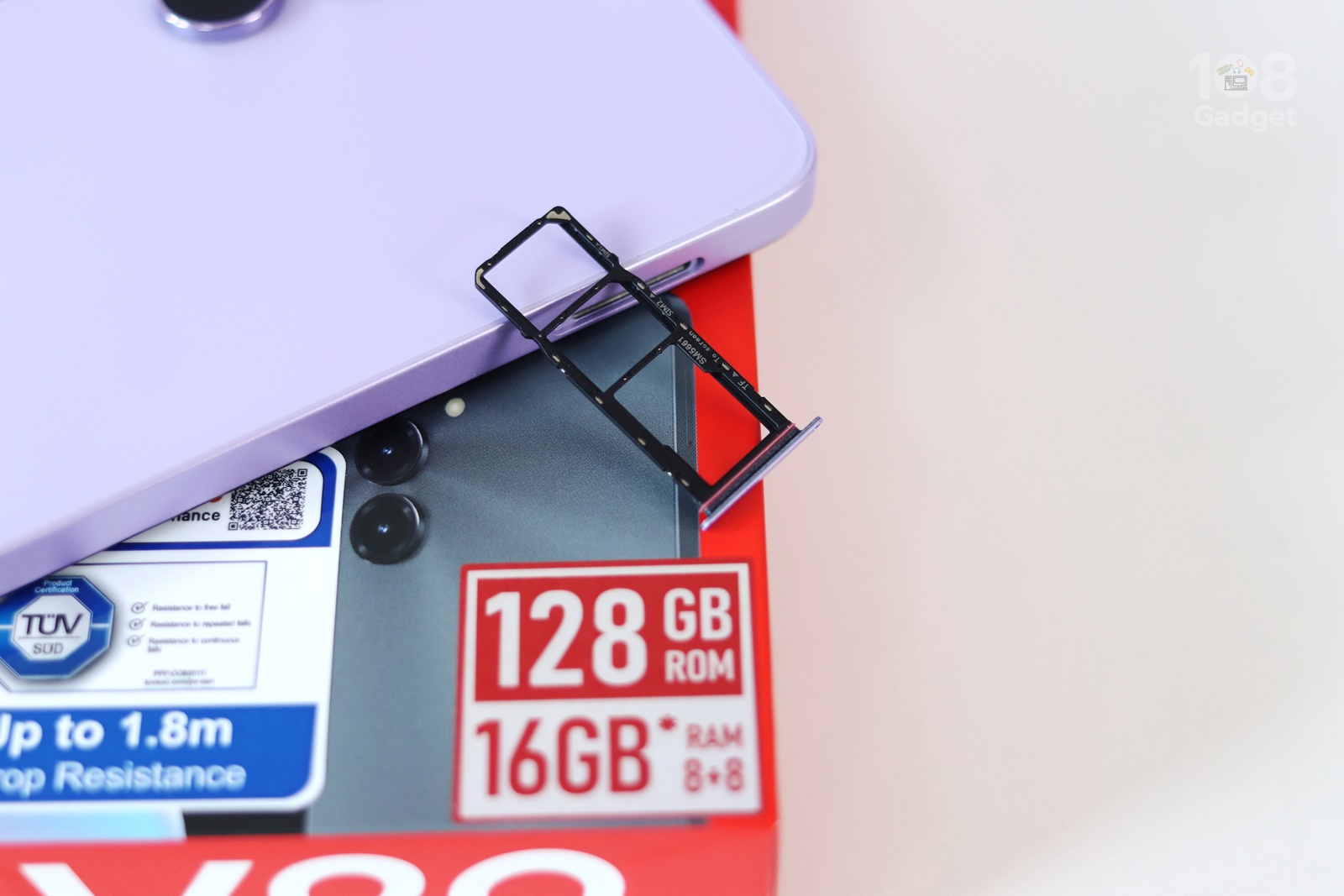 ถาดซิมการ์ดจะอยู่ฝั่งซ้ายของตัวเครื่อง ถาดซิมแบบ 3 สล็อตแยกชัดเจน รองรับ 2Sim + 1 MicroSD Card