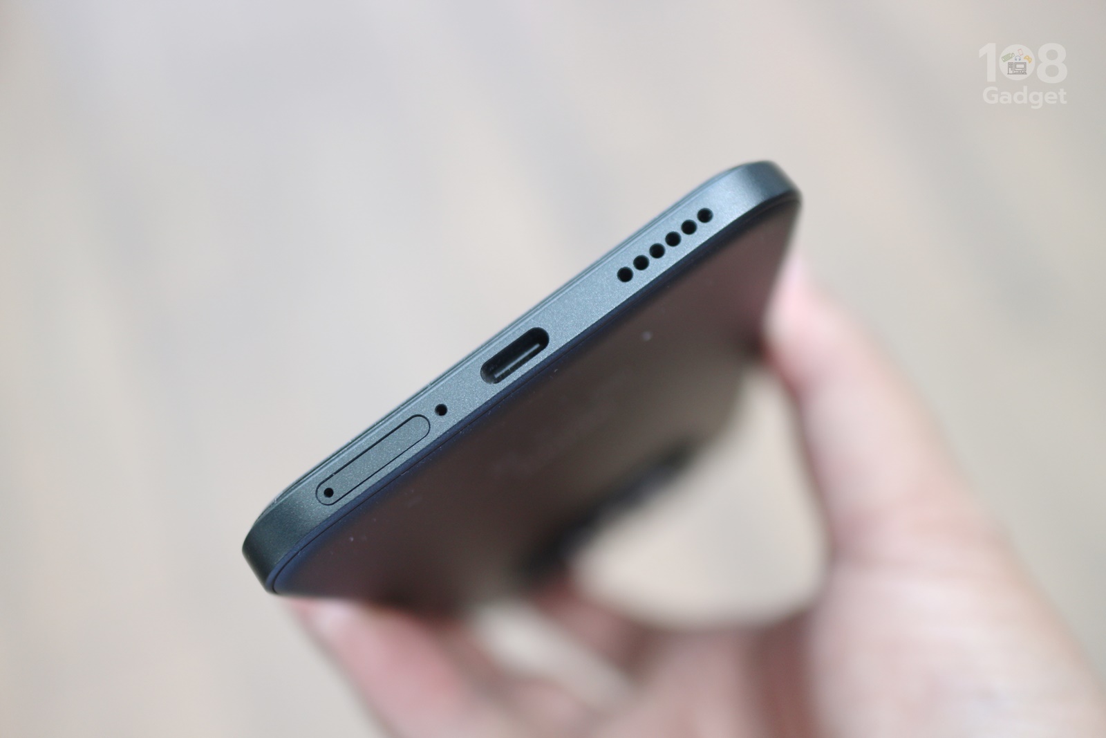 ด้านล่างตัวเครื่องจะมีตำแหน่งถาดซิมการ์ด, ไมค์สนทนา, พอร์ต USB-C และลำโพงหลัก