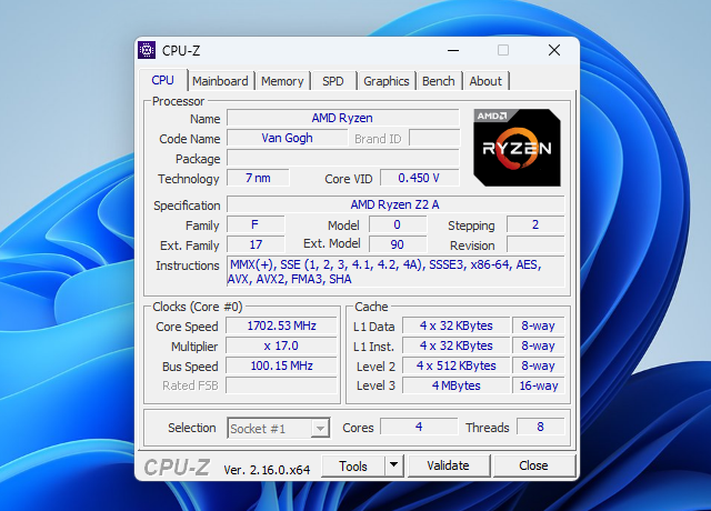 Processor : CPU AMD Ryzen™ Z2 A Processor 2.8GHz (6MB Cache, up to 3.8 GHz, 4 cores, 8 Threads)