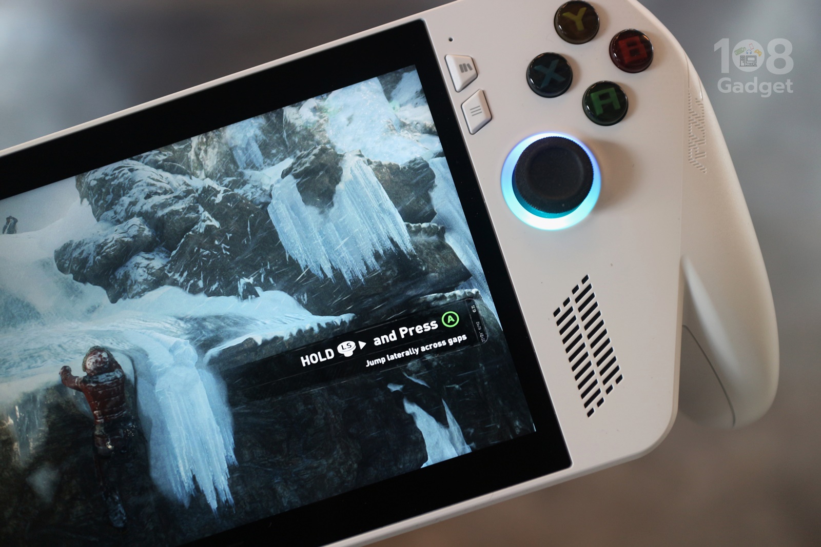 หน้าจอ IPS ขนาด 7″ ความละเอียด FHD 1920 x 1080 พิกเซล อัตราส่วน 16:9, Refresh Rate 120Hz ค่าความสว่างสูงสุด 500nits, sRGB:100%, AMD FreeSync รองรับการทัชหน้าจอ กระจกครอบทับหน้าจอแบบ Corning® Gorilla® Glass Victus ป้องกันรอยขีดข่วยได้อย่างดี ด้านข้างจอจะมีลำโพงคู่ Smart Amp รองรับระบบ Dolby Atmos ตำแหน่งเสียงดีมาก