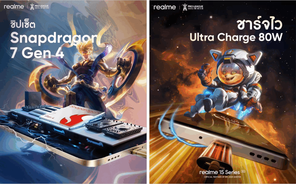 กรุงเทพฯ 21 ตุลาคม 2568 – realme แบรนด์สมาร์ตโฟนเพื่อคนรุ่นใหม่ที่เติบโตเร็วที่สุดในโลก ในฐานะ “OFFICIAL PARTNER” ของศึก RoV Pro League 2025 Winter (RPL 2025 Winter) เวทีการแข่งขันอีสปอร์ตระดับประเทศสุดยิ่งใหญ่ที่เหล่าเกมเมอร์ทั่วไทยตั้งตารอ ชวนแฟนเกมออกมาปลดปล่อยพลังและสัมผัสบรรยากาศสุดตื่นเต้นในรอบชิงชนะเลิศ วันที่ 25 – 26 ตุลาคม 2568 ที่ BITEC Live (ไบเทค ไลฟ์) โดย realme ยกขบวนกิจกรรมสุดเอ็กซ์คลูซีฟมาแบบจัดเต็ม ทั้งมินิเกมสุดเดือด การแข่งขัน RoV สด ๆ และโชว์จากเหล่าเกมเมอร์และ KOL ชื่อดัง พร้อมของรางวัลสุดพรีเมียมให้ร่วมลุ้นตลอดงาน แฟน ๆ จะได้สัมผัสประสบการณ์เกมมิ่งระดับโปรลีกอย่างเต็มรูปแบบในบรรยากาศที่มันส์จริง เรียลจริง ในแบบฉบับของ realme