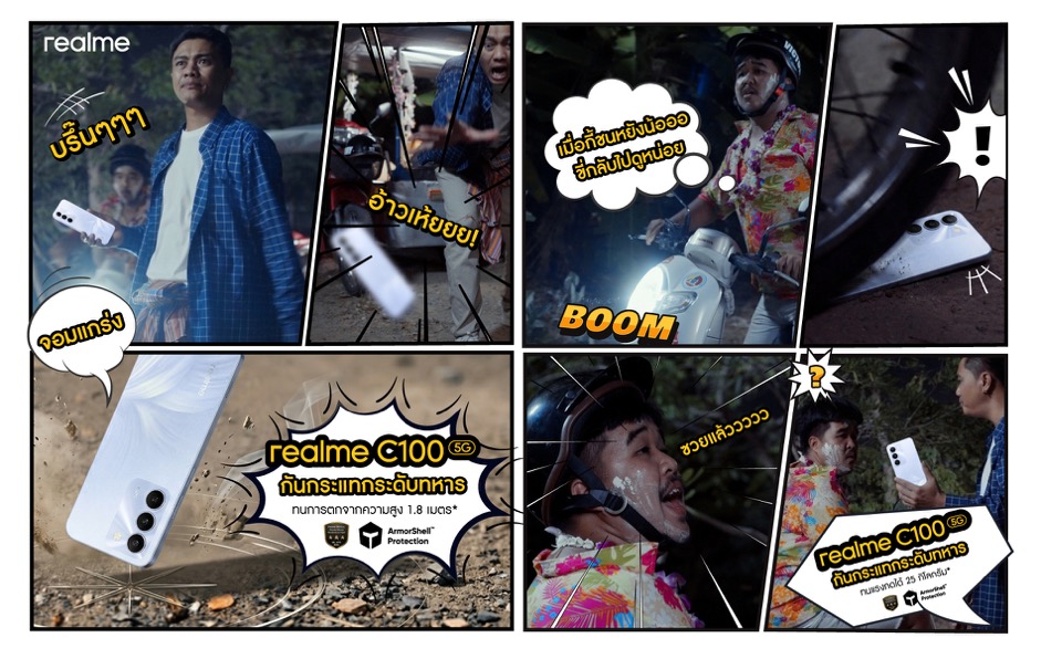 และเมื่อการเดินทางยังอีกยาวไกล พร้อมอุปสรรคที่รออยู่ในตอนถัดไป งานนี้คงต้องมาลุ้นกันต่อว่า แซ็ค ชุมแพ จะฝ่าทริปสุดป่วนนี้ไปได้อย่างไร และ realme C100 5G จะยังคง “เอาอยู่” ในทุกบททดสอบหรือไม่ แฟน ๆ สามารถติดตามซีรีส์ “realme C100 5G x แซ็ค ชุมแพ” ที่จะทยอยปล่อยครบทั้ง 3 ตอน ในวันที่ 6, 8 และ 10 เมษายน 2569 ผ่านช่องทาง realme Thailand และ Zak_chumpae_official บน TikTok พร้อมมาร่วมลุ้นและเอาใจช่วยให้ทริปสุดป่วนครั้งนี้ ไปถึงบ้านได้แบบแฮปปี้เอ็นดิ้ง