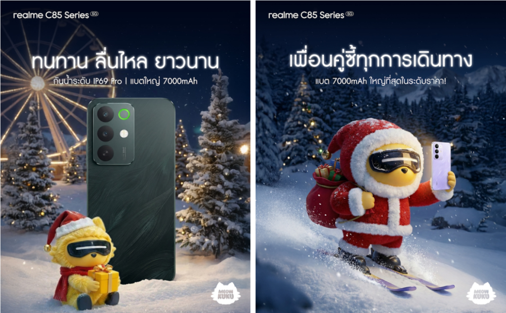 โดยเฉพาะ realme C85 Series 5G ที่ถูกยกย่องว่าเป็นสมาร์ทโฟนสุดทนทานแห่งปี มอบความคุ้มค่าในทุกด้าน ทั้งการกันน้ำระดับ IP69 Pro ซึ่งสูงสุดในช่วงราคา แบตเตอรี่ขนาดใหญ่ 7000mAh ใช้งานได้ยาวนานตลอดทั้งวัน และหน้าจอขนาด 6.8 นิ้ว ที่ใหญ่ที่สุดในกลุ่มราคาเดียวกัน ทำให้เป็นตัวเลือกที่ตอบโจทย์ทั้งความทนทานและการใช้งานที่เต็มอิ่มในทุกมุมมอง