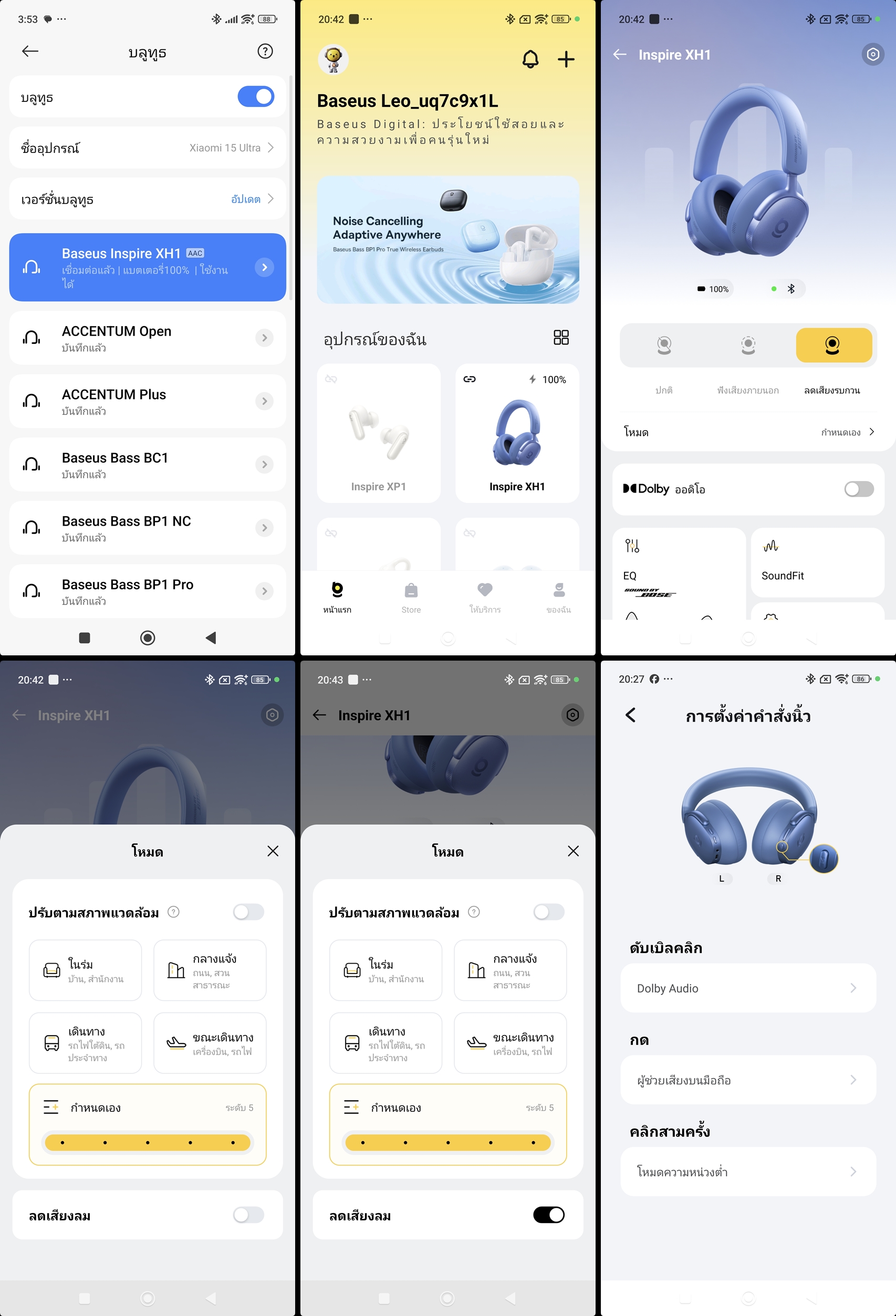 - สามารถปรับตั้งค่าเสียงรบกวนรอบข้าง ANC(Active Noise Cancelling) ได้ละเอียดมากๆ ถ้าเปิดโหมด ANC จะสามารถปรับระดับเองได้ 5 ระดับ และจะมีโหมดมาให้ทั้งหมด 4 แบบคือ ในร่ม หรือในอาคาร, กลางแจ้ง, เดินทาง, ขณะเดินทาง