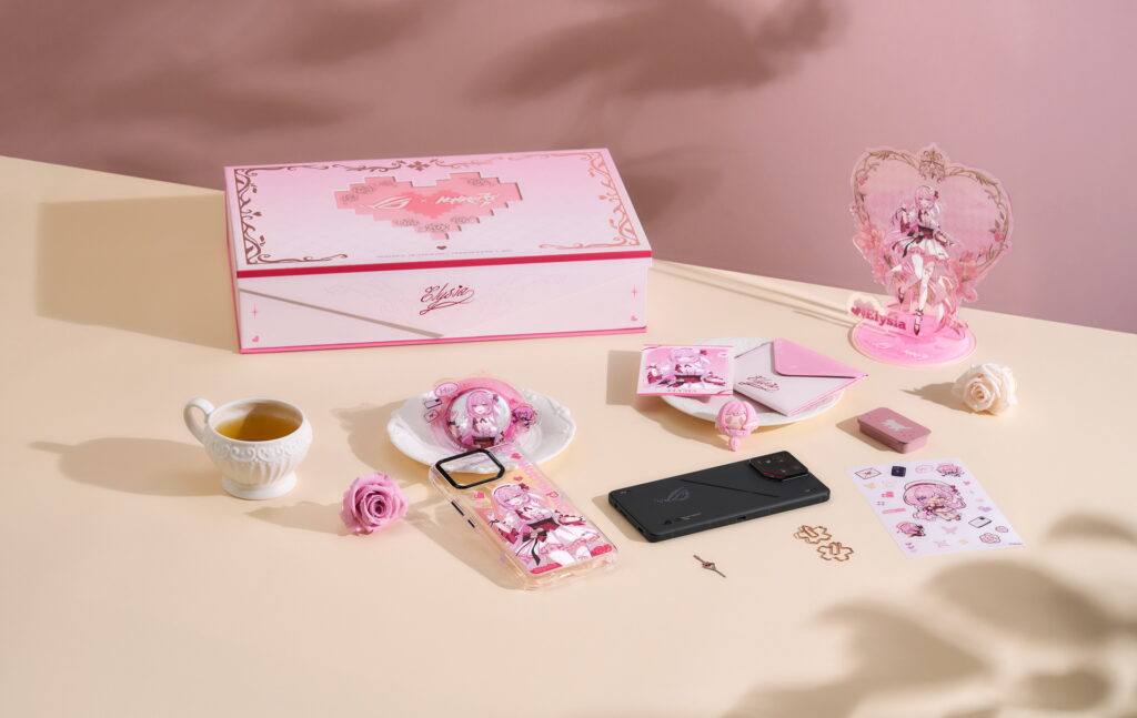 สำหรับชุด Elysia’s Special Collection Gift Box นี้จะมาในธีมสี Romantic Pink พร้อมดีไซน์กล่องที่ทำขึ้นมาเพื่อ ROG Phone 9 FE เท่านั้น มีรูปหัวใจสีชมพูอยู่ตรงกลางเพื่อเป็นข้อความพิเศษที่ทาง Elysia ตั้งใจส่งถึงเหล่าแฟนๆ ทุกท่านที่ให้การสนับสนุนเธอมาโดยตลอด ตัวกล่องโทนสีชมพูพาสเทลนี้ได้ผสมผสานเข้ากับองค์ประกอบเทคโนโลยีสไตล์พิกเซล เพื่อถ่ายทอดตัวตนที่อ่อนหวานโรแมนติกของเธอควบคู่ไปกับนวัตกรรมอันเป็นเอกลักษณ์ของ ROG Phone 9 อย่างไฟ AniMe Vision ตรงด้านหลังเครื่อง