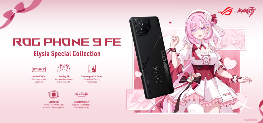 กรุงเทพฯ, ประเทศไทย, 27 ตุลาคม 2568 – เอซุส ภายใต้แบรนด์รีพับบลิค ออฟ เกมเมอร์ส (ROG) ประกาศเปิดตัวคอลเลกชันเกมมิ่งโฟนสุดพิเศษ “ROG Phone 9 FE x Honkai Impact 3rd Elysia’s Special Collection” ที่ได้จัดทำร่วมกับค่าย HoYoverse เจ้าของเกมมือถือชื่อดังอย่าง Honkai Impact สุดยอดเกมแนว Action RPG ระดับโลก สไตล์อนิเมะต่อสู้สุดมันส์ โดยถือเป็นการเปิดตัวชุดครอสโอเวอร์สุดเอ็กซ์คลูซีฟของตัวละคร Elysia (เอลิเซีย) หนึ่งในตัวละครที่ได้รับความนิยมเป็นอย่างมากในกลุ่มผู้เล่นและชุมชนแฟนเกม Honkai Impact ที่ผสานเสน่ห์อันอ่อนช้อยของเธอ คอสตูมสีขาว-ชมพูอันเป็นเอกลักษณ์ แต่ขณะเดียวกันก็ถือเป็นตัวละครสาย DPS ที่เน้นทำดาเมจกำจัดศัตรูให้มากที่สุด ซึ่งเข้ากับคาแรกเตอร์ของ ROG Phone 9 FE ที่เป็นเกมมิ่งโฟนสุดแรง และพร้อมมอบประสบการณ์ที่ผสมผสานทั้งคุณค่าของการสะสมและจัดเต็มด้วยประสิทธิภาพที่ยอดเยี่ยมที่สุดในการเล่นเกมบนสมาร์ทโฟน ภายใต้สโลแกน “Your Game, Lit With Love เกมของคุณ สว่างไสวด้วยรัก”
