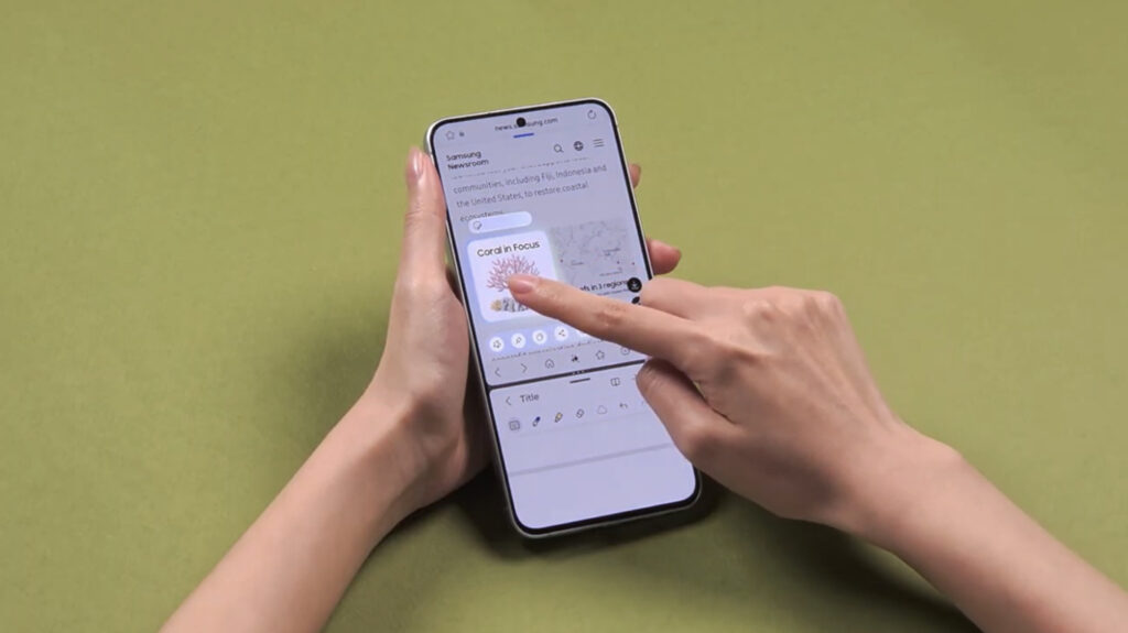 ผู้ใช้งานยังสามารถย้ายเนื้อหาระหว่างแอปได้อย่างราบรื่น ด้วยฟีเจอร์ Multi-Window Drag & Drop ที่ทำงานร่วมกับ AI Select ช่วยให้การทำงานหลายอย่างพร้อมกันเป็นไปได้อย่างรวดเร็วยิ่งขึ้นในแอปอย่าง Samsung Browser และ Samsung Notes โดยสามารถลากรูปภาพไปวางใน Samsung Notes ได้โดยตรง พร้อมปรับขนาดได้ตามต้องการ