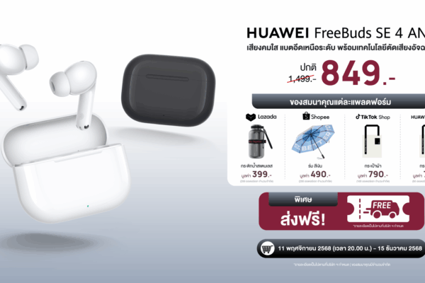 lifestyle News PR Smartphone วางจำหน่ายแล้ว HUAWEI FreeBuds SE 4 ANC หูฟังตัดเสียงรบกวนที่คุ้มที่สุดจากหัวเว่ย ด้วย 3 โหมดตัดเสียงรบกวนอัจฉริยะสูงสุด 50dB แบตอึด 50 ชม. ดีไซน์เบาใส่สบาย ในราคา โปรโมชันเปิดตัวราว 800 บาท 108Gadget_24 ชั่วโมง ago01 mins กรุงเทพฯ 11 พฤศจิกาย… Continue reading